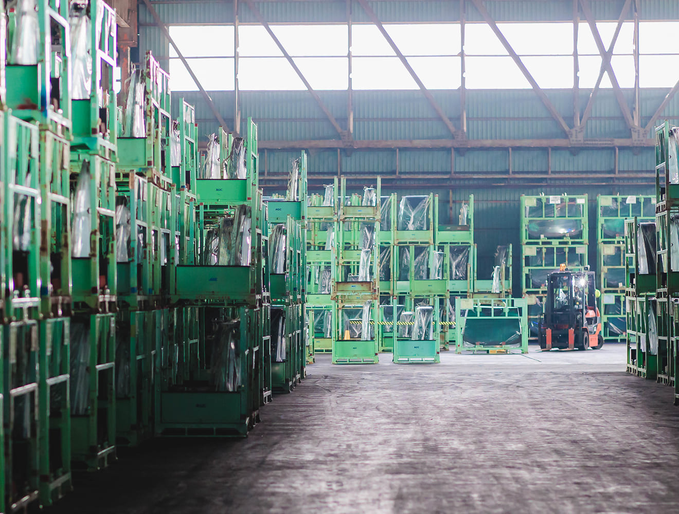 ガラスの製造・加工はもちろん、原材料の受け入れ管理、品質検査、物流管理、さらには専用パレットの製造まで。ガラスに関わるあらゆる工程で、お客様の課題解決をサポートしています。